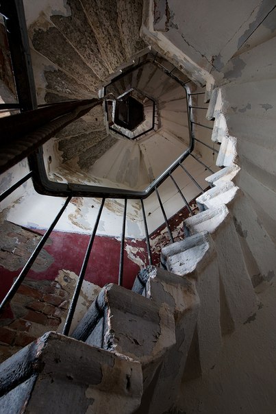 Старинный маяк на острове Большой Тютерс в Финском заливе. Построен на скале в центральной части острова в 1904 году, работает до сих пор. Внутри башни все живописно обветшало, но все механизмы, связанные с "лампой", работают безупречно.