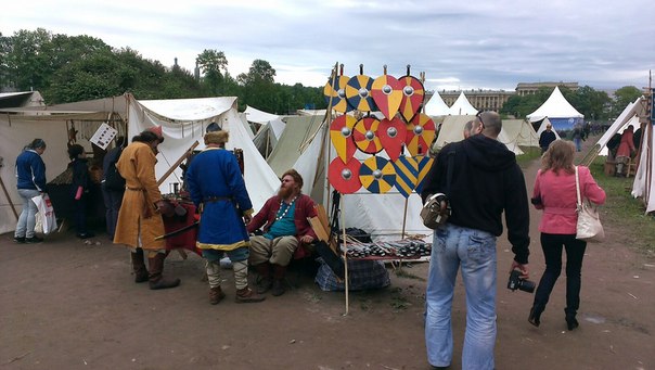 Встал сегодня в 8 утра, и интересно наблюдать как в городе по-тихому готовятся к празднованию: понаехавшие норвержские викинги, девочки репетирующие на фоне Эрмитажа и лодки-на-колёсиках для детской регаты...