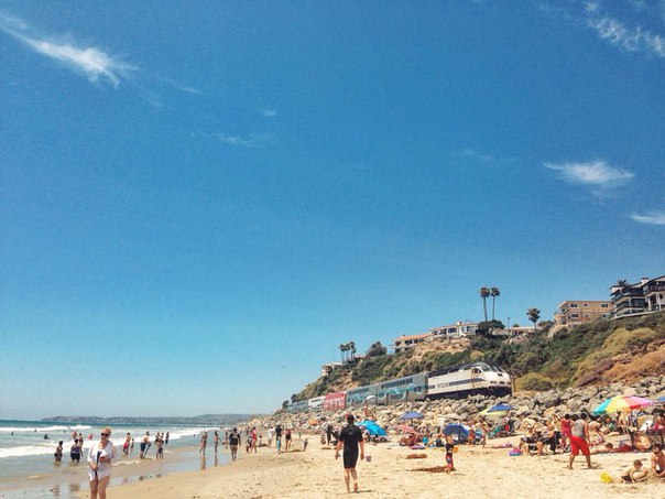 Beach, people, train ???? It was the very first ocean in which we swam ???? Amazing experience! And the water was much more warmer than in our Baltic sea! ????
