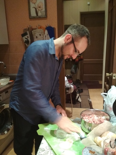 Кто чем занимается в пятницу вечером, а я учу друга-аргентинца делать манты. Вот какие мясные розочки теперь у нас на противне. А на фоне - аргентинский хард-рок.