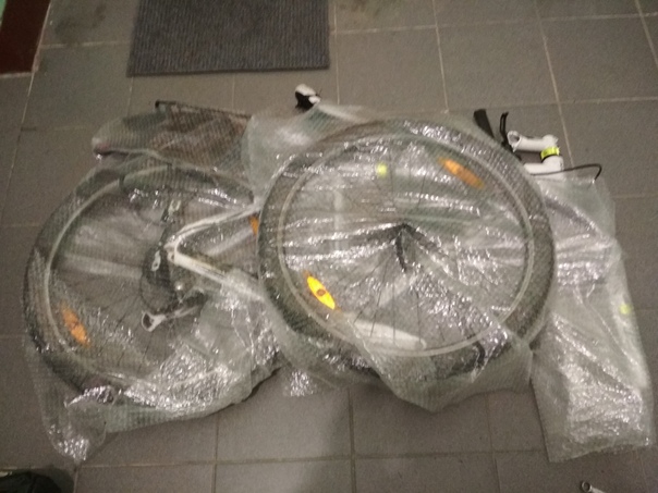 С автобусами и поездами - история знакомая, а вот про самолёт я ничего не знала, пересмотрела кучу роликов, испугалась и сделала все по инструкции: сняла не только переднее колесо, крыло и педали, но и руль, а также задний переключатель. Замотала в плёнку. Запихала в чехол. Вытащила. Потом размотала и собрала обратно. Сама! Это была репетиция перед отъездом.