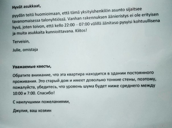 В другой квартире нас назвали "квестами". ) Если бы не этот досадный ляп, я бы подумала, что хозяин Джулия свободно знает русский.