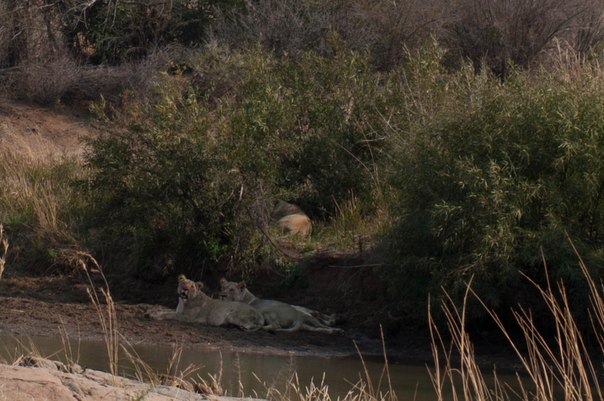 ... львы на фоне все этого выглядят мирно и безопасно, хотя и неодобрительно поглядывают в нашу сторону (я даже попробовала вылезти из машины, но мимо проезжал рейнджер и довольно внушительно попросил этого не делать).