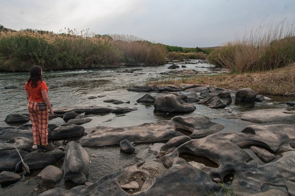 А я-то приоделась по такому поводу... Ладно, шутка, я все время здесь так хожу. Но саму ситуацию надо было как-то исправлять. Поэтому я достала самое оранжевое, что у меня было с собой — лак для ногтей — и попробовала его вписать в пейзаж. Некоторые люди возят свои игрушки и фотографируют их на фоне тех мест, где бывают. Я так никогда не делала, но решила, что пузырек с оранжевым лаком для ногтей тоже достоин такой чести. А с третьей фотографией вообще надо идти к производителю лаков и требовать гонорар за рекламу. Или хотя бы за идиотскую идею для нее. Оранжевый лак на Оранжевой реке. Только в ЮАР!