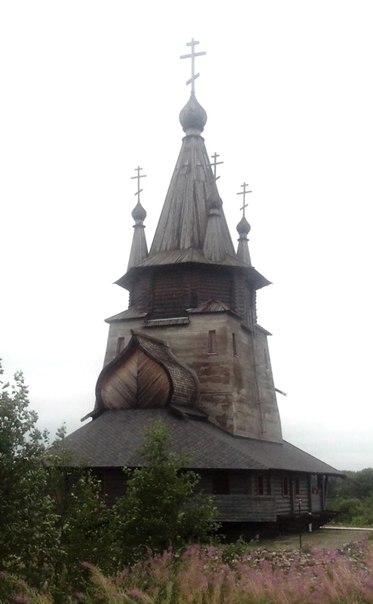 Храм возле 2-го шлюза Беломорско-балтийского канала в своеобразной стилистике: основа бетонная, как опоры шлюзов, маковки традиционные, колокольня в форме лагерной вышки. Церковь св. Николая в память о строителях ББК, пос. Повенец.