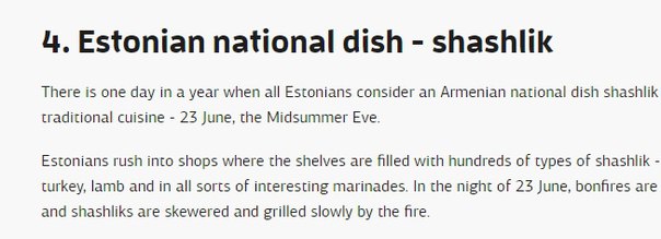 # sorry Found on one site (http://estonianfood.eu/en/content/interesting-facts-about-estonian-food) in the section "Interesting facts about Estonian cuisine" here it is. Hmm, really. Very interesting, if not to say a mysterious fact ... :)