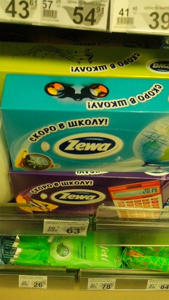 Вот чем руководствовался тот человек, который придумал поместить лозунг «Скоро в школу» на объемистую коробку… с носовыми платками?? «Скоро в школу – вот тут ты у меня наплачешься!»?