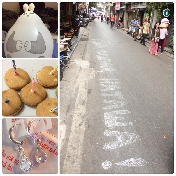 Лизка с Сашей начали сегодняшний день с риском для жизни, учитывая вьетнамское дорожное движение - я еле умудрилась поймать момент без транспорта на одно мгновение для фото, а они справились... Я начала сегодняшний день с задувания свечек. Все как полагается!