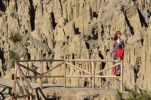 " лунная долина" в ЛаПасе находится где-то между головокружением и уходящей землей из под ног, это правда страшно, но ты делаешь следующий шаг. Навстречу мелким камням, цветущим кактусам и ярким птицам, всматриваясь с чернющей завистью вдаль, в одинокие двухэтажные домики прямо на краю..луны. Защитные перила, ступеньки, указатели, мостики, скамейки, и другие причиндалы цивилизации, конечно, возвращают к реальности, но ты все равно уверенно чувствуешь себя Женщиной на Луне, в бежевой мельчайшей пыли, и без какого-либо желания приземляться