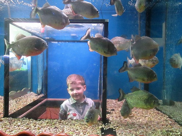 Visiting my grandfather at work =) I visited it for the first time too =) Marine Aquarium at Chistye Prudy.