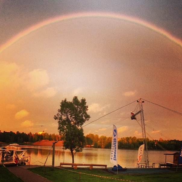 Всего час назад над сан парком раскинулась радуга! ???? Такого размаха, такого объёма, яркости и материальности я никогда до этого не наблюдала. Это было фантастически! Достойное завершение чудесный выходных! ????????❤️???????????????? @ Sunpark Wake Cable http://instagram.com/p/otvttavYVh/