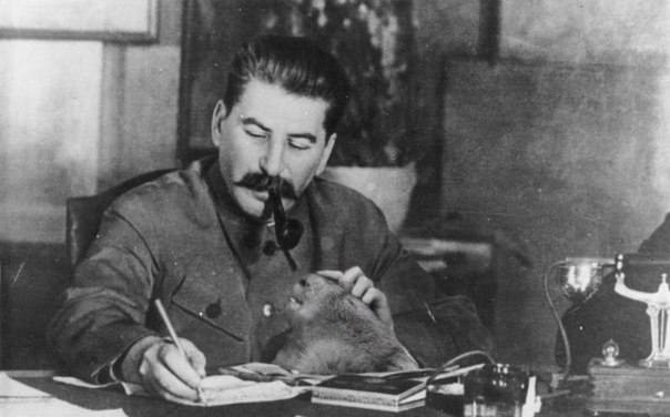 February 1937 Joseph Vissarionovich Stalin is working on the report "On the shortcomings of party work and measures to eliminate the Trotskyite and other dorushniki" and strokes the wombat, who sits on his lap.