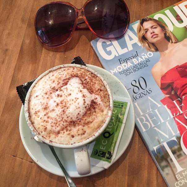 My little strange tradition - to bring fresh local Glamour magazine from every country I visit // Смешная традиция - тащить местный Гламур из путешествий. Испанские выпуски - любимые, их я могу прочитать от корки до корки. А ещё они самые яркие. #glamour #coffee #coffeporn #espana #spain #barcelona