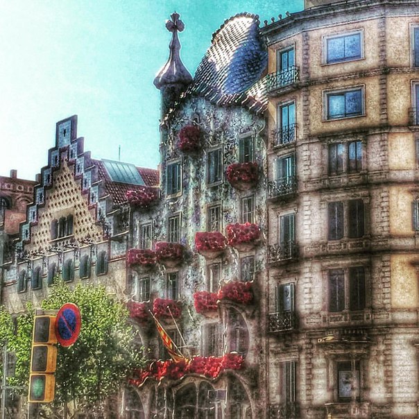 San Jordi in Barcelona // We suddenly got to the celebration of St. George's Day (San Jordi). Grishka is the patron of the city, so the number of striped flags has increased tenfold (although much more). Grishka also managed to save some princess from the dragon (I remember the dragon, the princess did not), so St. George's Day is an analogue of DSW, when boys give roses to girls, and girls give books to girls. Everywhere bouquets tied with the Catalan flag - well, purely St. George ribbon. And Casa Batllo was decorated with roses. #espana #spain #barcelona #casabatllo