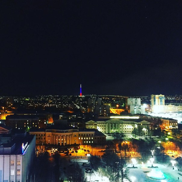 То чувство, когда ближайшие два дня будешь жить в самом высоком здании за полярным кругом. А телебашня по-разному светится, но мне в кадр влезла во всем патриотизме.