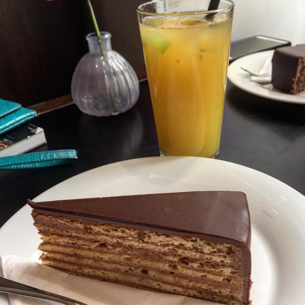 Местный специалитет Prinzregenttorte - 8 коржей по числу земель Баварии на момент правления принца-регента Луитпольда #food #foodporn #prinzregenttorte #cake #limonade #munich #munchen @ Cafe Luitpold