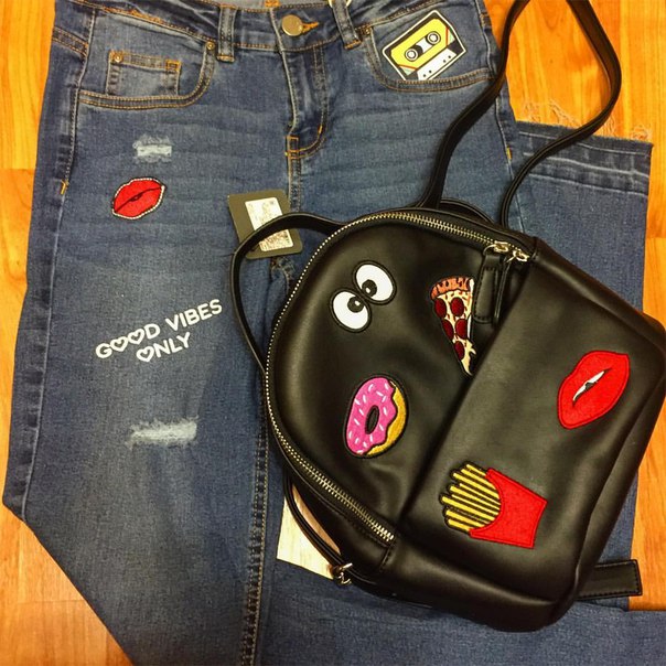 Любовь к шпилькам, кружевному белью пушап и элегантным сумкам как-то незаметно сменилась страстью к драным джинсам с нашивками, смешным рюкзакам и хлопковым труселям с Микки-Маусом. Маленькая собачка до веку щенок. #marmalato #modis #jeans #pizza #clothesporn