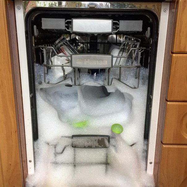 Попросила мужа загрузить посудомойку. "Я решил, что одной таблетки слишком много и решил добавить Фейри", -гордо сообщил мне супруг с вроде бы инженерным образованием.