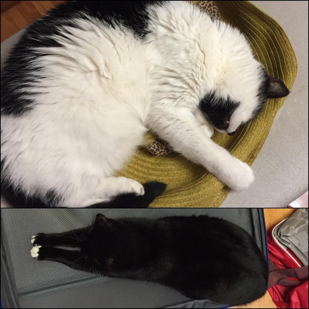 Помогали собирать чемоданы и очень устали // Got tired of helping mom and dad to pack up for a vacation #dantheblackandwhitemovie #yenneferlagata #cats #catsofinstagram