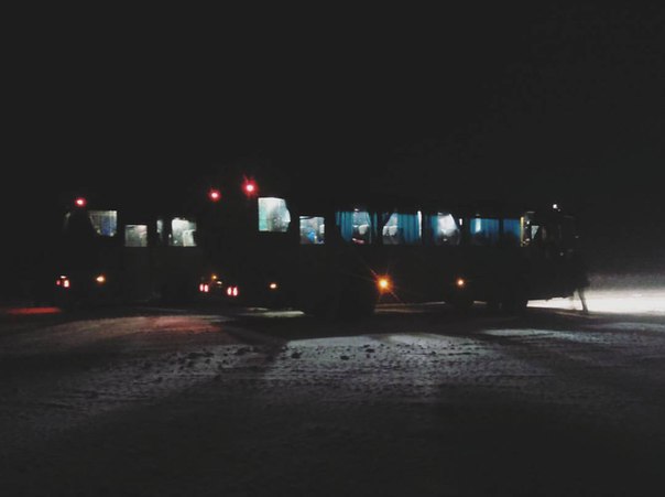Привет из ниоткуда. Трасса Мурманск - Териберка. Метель сбивает с ног, прямо перед автобусом едет спецтехника и расчищает дорогу. 8 января дорогу закрывали на три дня, обратно автобус в 7 утра. Буду надеяться не остаться в Териберке зимовать надолго. Круто, но страшновато, когда мир превращается в точку в виде автобуса. А вокруг ничего, и пока ты едешь, все хорошо. И хорошо, что иногда есть сеть :) @ Белоснежная Тундра