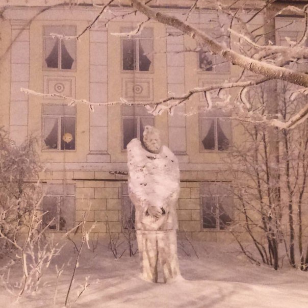 Unfortunately, we did not think that the Venedict Yerofeyev Museum will be closed on holidays, as it is located in the library. But Kirovsk is significant for us also for this reason. Well, what to do, it means that I will come back again, there are many reasons. In the photo is the school where Venichka studied (closed for repairs), and a monument to Gorky, reminiscent of the last scenes of the movie "Shining" ????