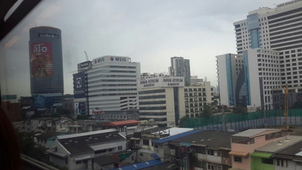 Пока в Москве все спали (разница 4 часа), мы приземлились в Бангкоке около 7 утра и на метро доехали до гостиницы. Наземный экспресс из аэропорта похож на наш монорельс. Виды из окна.