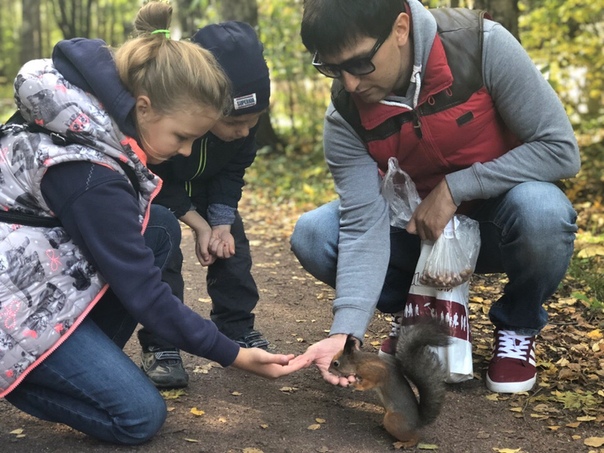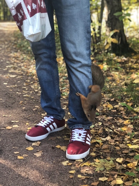 Новое потомство белочек в Сосновом парке совсем бесстрашные. Залезают прямо на тебя ради еды ????.