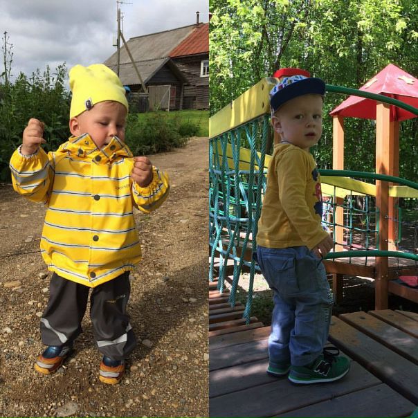 Лето 2015 было такое же жаркое, как и 2017. Радует только то, что с тёплой одеждой у Саши проблем нет ????