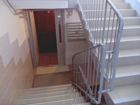 Дом ЖСК, чистая лестница, входная группа - плитка.