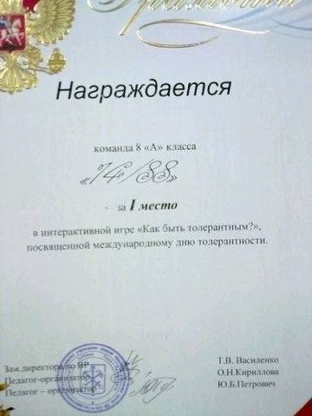 Since 2006, the program "Tolerance" has been operating in St. Petersburg. Contests are held among schoolchildren, the winners are awarded with certificates. Some teams, as can be seen from the KDPV, have a very interesting title for this kind of competition ...