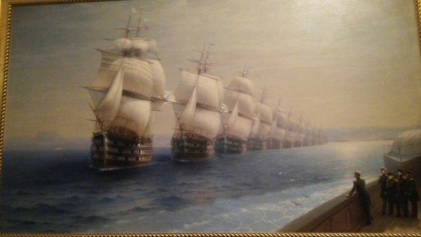 Выставка стоящая, качественная, но скученная: залы маленькие, работ много, народу-толпы! Есть очень необычные, непривычные работы, есть те, которые впервые выставляются для широкой публики, есть те, что выставляются в РМ в верхнем ряду зала, посвящённого Айвазовскому и их плохо видно, а на этой выставке их можно увидеть под другим углом.