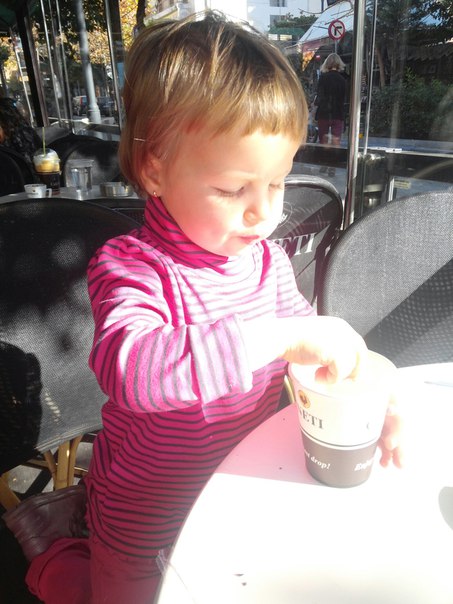 Вышло солнышко, и к 11 утра стало +13, к 12.00 уже +16, так что я даже сняла зимнюю куртку и себя, и с Ники. А когда я втаскивала коляску в гору (весь район гористый-холмистый, плитка ребристая,тротуар заставлен припакрованными машинами), то аж вспотела:)