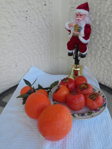 For example, December is orange, honey persimmon with a transparent, flowing juice pulp, these are pomegranates, the color of grains of which varies from dark burgundy to almost purple, these are all types of citrus fruits: giant orange oranges, thin-skinned with green branches of tangerines and bright yellow-greenish lemons, tart grapefruits