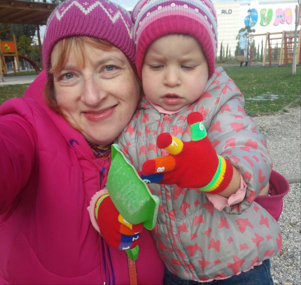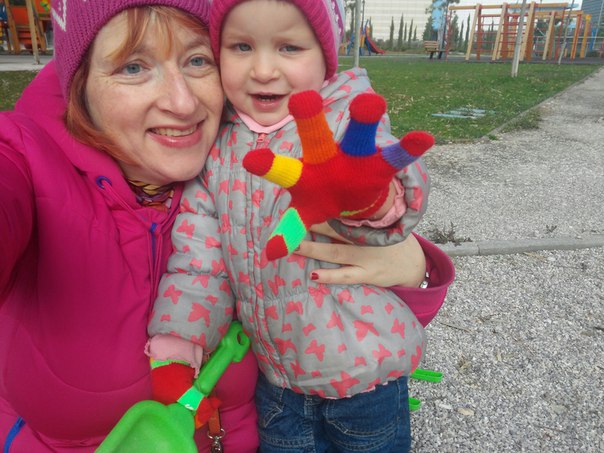 Но мы героически гуляли с Никой 2 часа (на площадке и на улице НИ ОДНОГО человека с ребёнком), заодно купили новые, модные перчатки