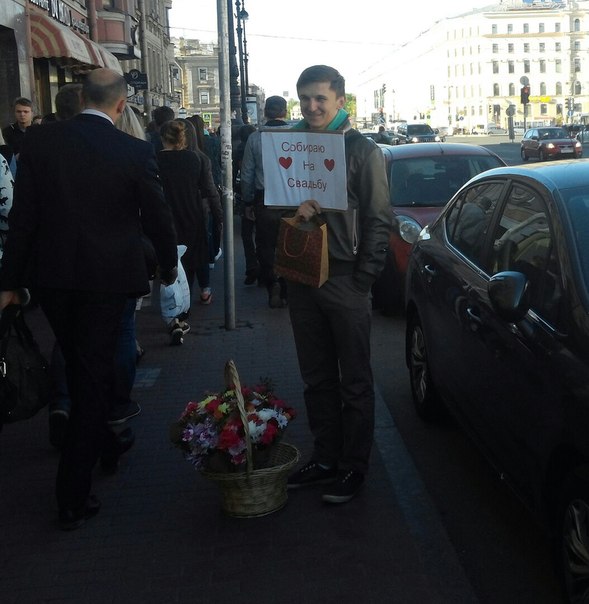 Now you explain to me what this means?! For the third week already, a young man is standing on the corner of Ligovsky and Nevsky with a bucket of flowers and a sign “I am collecting for the wedding”, smiling with a slightly silly smile