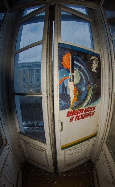 Walking around the city last night, they accidentally stumbled upon the building of an abandoned college. We go through the corridors of the institution and I say - "it would be fun to find a poster with Gagarin, it would be possible to lay out tomorrow." Actually in the next room and the photo was taken.