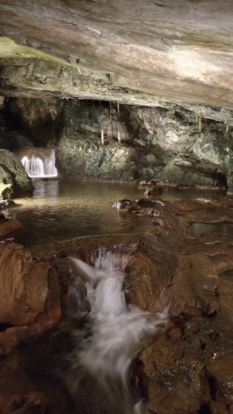 Страшно представить, как недра этой пещеры исследовали в прежние времена: ползком на брюхе в ледяной воде часа 4 со свечкой или факелом. Но гроты и водопады внутри красивейшие.