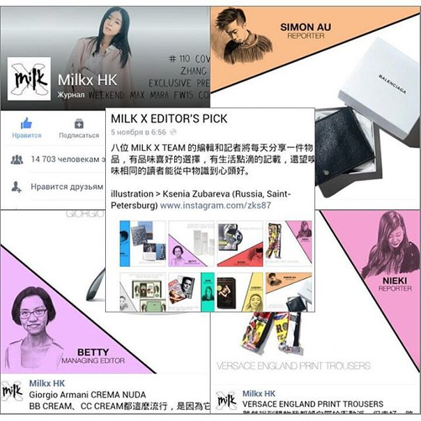 "MILK X Editor's Pick" с моими иллюстрациями редакторов (в разноцветных треугольниках) ????