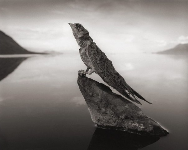 Looking at this photo it's hard to believe that at times this lake looks quite usual. But when the evaporation of water leads to a significant increase in the alkalinity of Natron, some types of bacteria are activated, the vital activity of which paints the lake in a blood-red color. Only a few species of animals live in the lake, including a unique species of fish called alkaline tilapia. In addition, rare small flamingos live here, for which this is one of the few breeding sites. The waters of the lake reliably protect flamingos from predators during the breeding season, so millions of these birds fly here to nest, but this is still a rather dangerous undertaking - flamingos build their nests on islands of salt that surround the deadly waters of the lake. The alkalinity of the lake reaches exorbitant levels, and the water temperature is 60 ° C, so animals (mainly birds), falling into the lake, die immediately, and their remains are covered with minerals and harden, turning into stone sculptures. For the first time, Natron’s unique “ability” to kill animals and turn them into statues was discovered by photographer Nick Brandt during his next trip to Africa. He made a report, arranging the remains as if these birds and bats were alive, which made his shots look like scenes from a horror movie. “I could not help taking a picture of them,” he says.