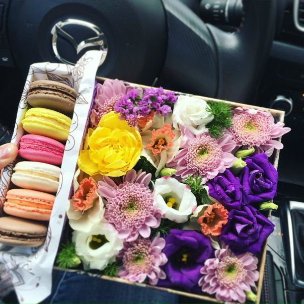Friends, soon lovers day, do not forget?!) The box with flowers and macarons is a great trendy and very tasty! gift for your girlfriend! Order in advance! Boxes from 1000 rubles!